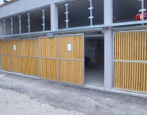 Consistent with the architecture of the surrounding area, electric gates with wood slats were used for the parking system.